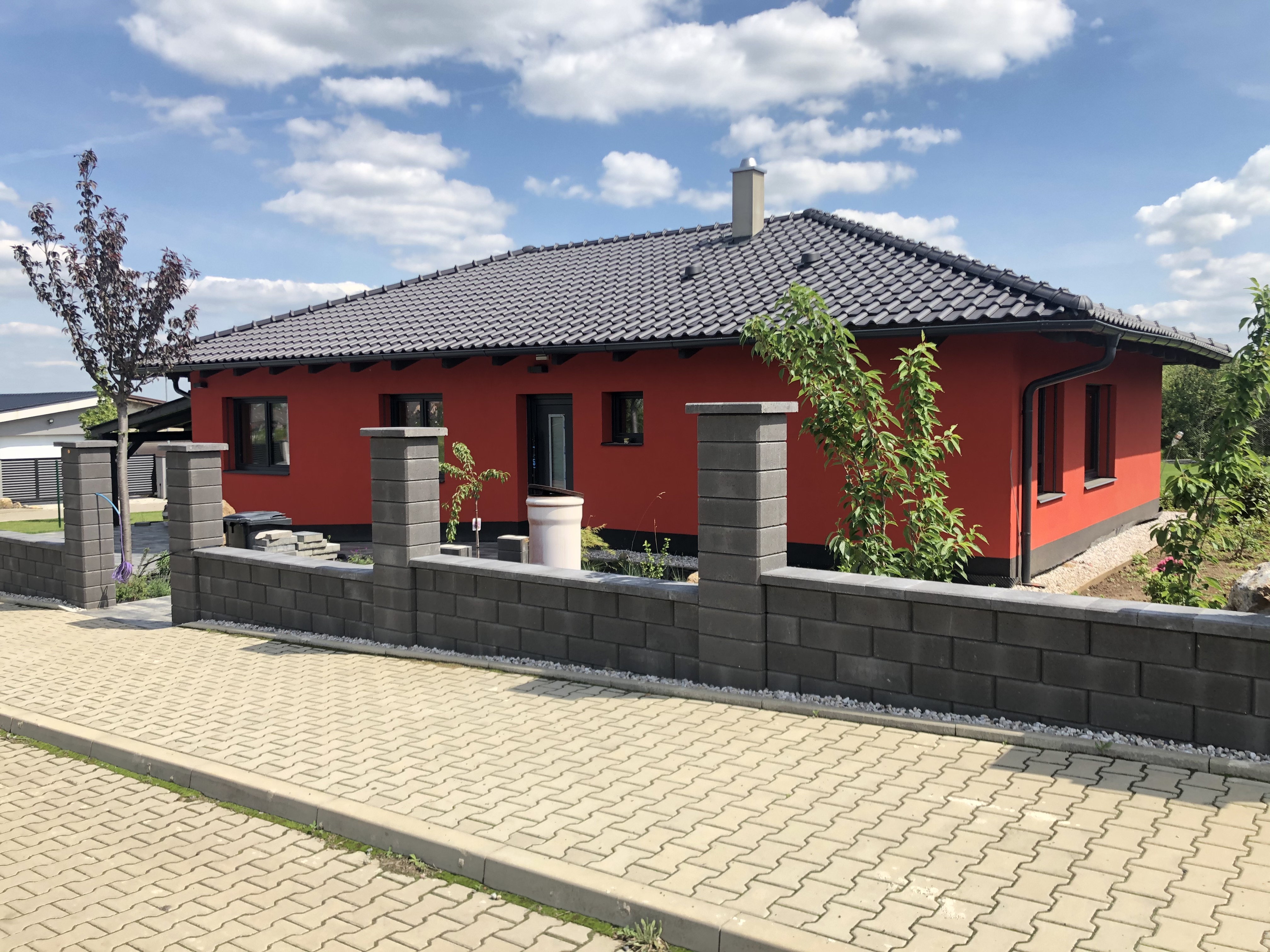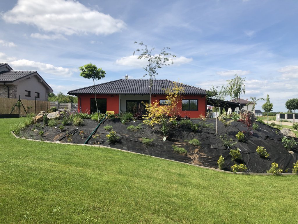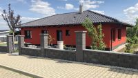 Dům je řešen jako jednopodlažní bulgalov s jednou bytovou jednotkou. Půdoris je ve tvaru obdelníku o rozměrech 15 x 9 m s vestavěnou terasou a přístřeškem na parkování 3 x 9 m. Stavba obsahuje obývací pokoj s kuchyní, dvě ložnice, koupelnu, šatnu, WC, zádveří, prostornou technickou místnost a spíž.