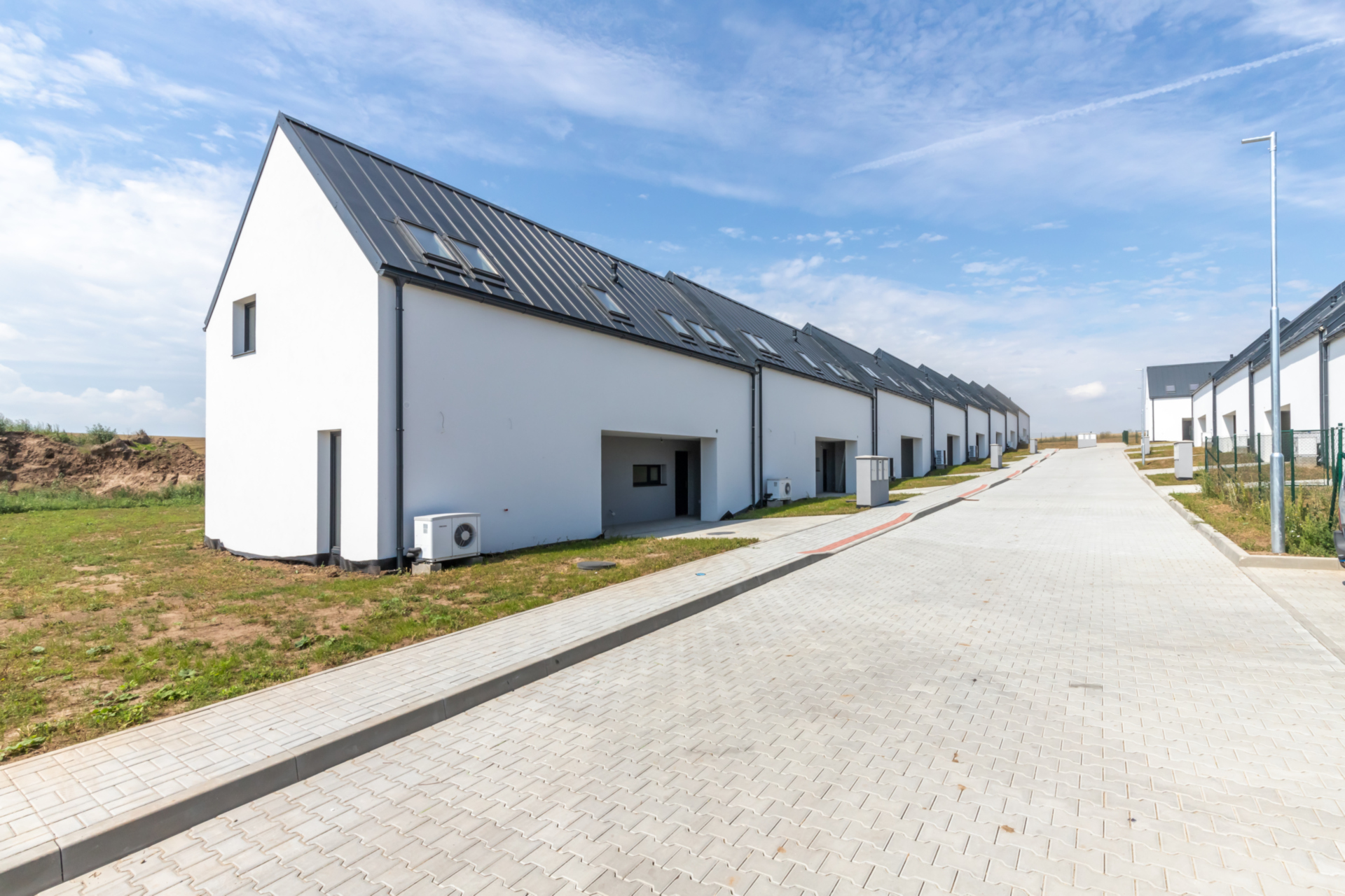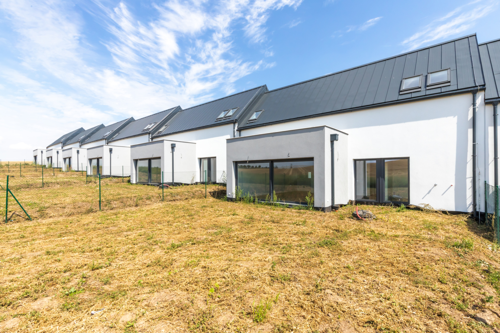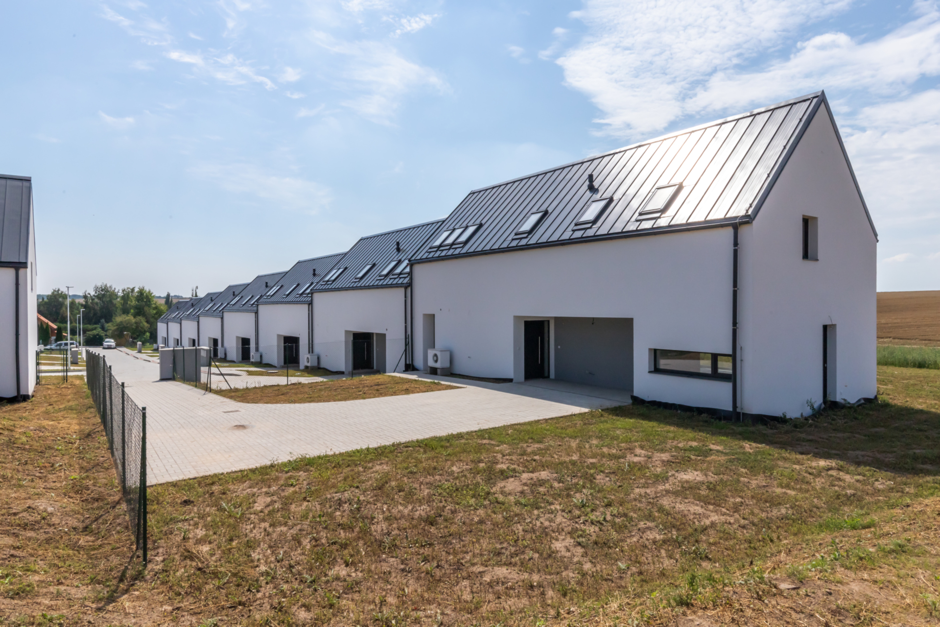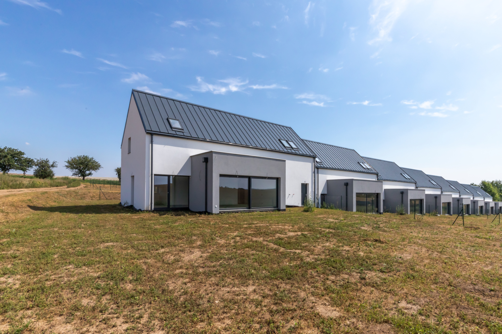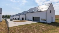 Náš projekt s nadstandardně velkými pozemky nabízí 15 řadových rodinných domů v neotřelém architektonickém řešení. Celkem je možné si vybrat ze 3 typů různých dispozic interiéru s orientací k různým světovým stranám. Je kladen důraz na maximální soukromí a efektivní propojení zahrady s obytným prostorem je zajištěno francouzskými okny.