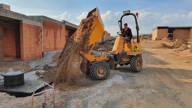 Při realizaci našich staveb si provádíme veškeré výkopové a zemní práce pomocí vlastních strojů. Patří mezi ně výkopy základů, přípojek a hrubých terénních úprav. Dále také úpravy zahrad, realizace jezírek a bazénů, úpravy terénu a třeba i pokládky travních koberců.